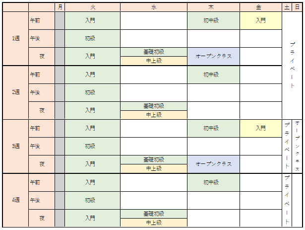 レッスンスケジュール