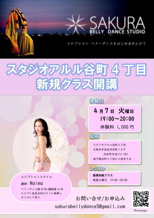 スタジオアルル谷丁目4丁目 新規クラス開講のお知らせ